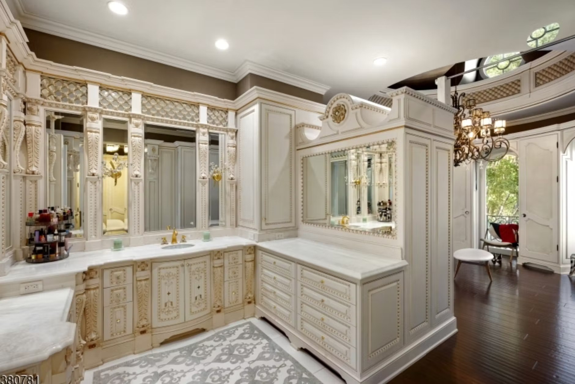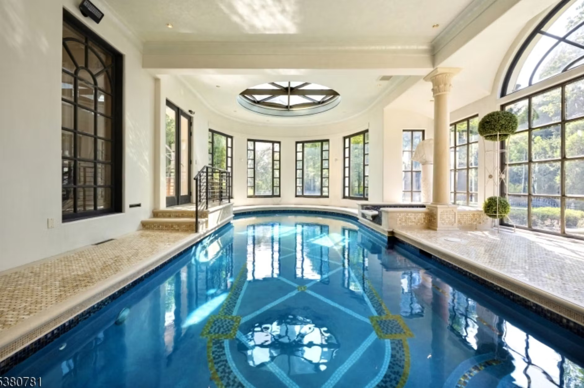 It is owned by Avraham Tahari, who is the co-founder of New York-based fashion brand Elie Tahari (along with his brother Elie). It features 21,000 square feet of living space with 8 bedrooms, 10 bathrooms, grand double staircase, elevator, multiple living rooms, formal dining room, kitchen with double islands, office, indoor swimming pool with spa, finished lower level, 3-car garage and more.