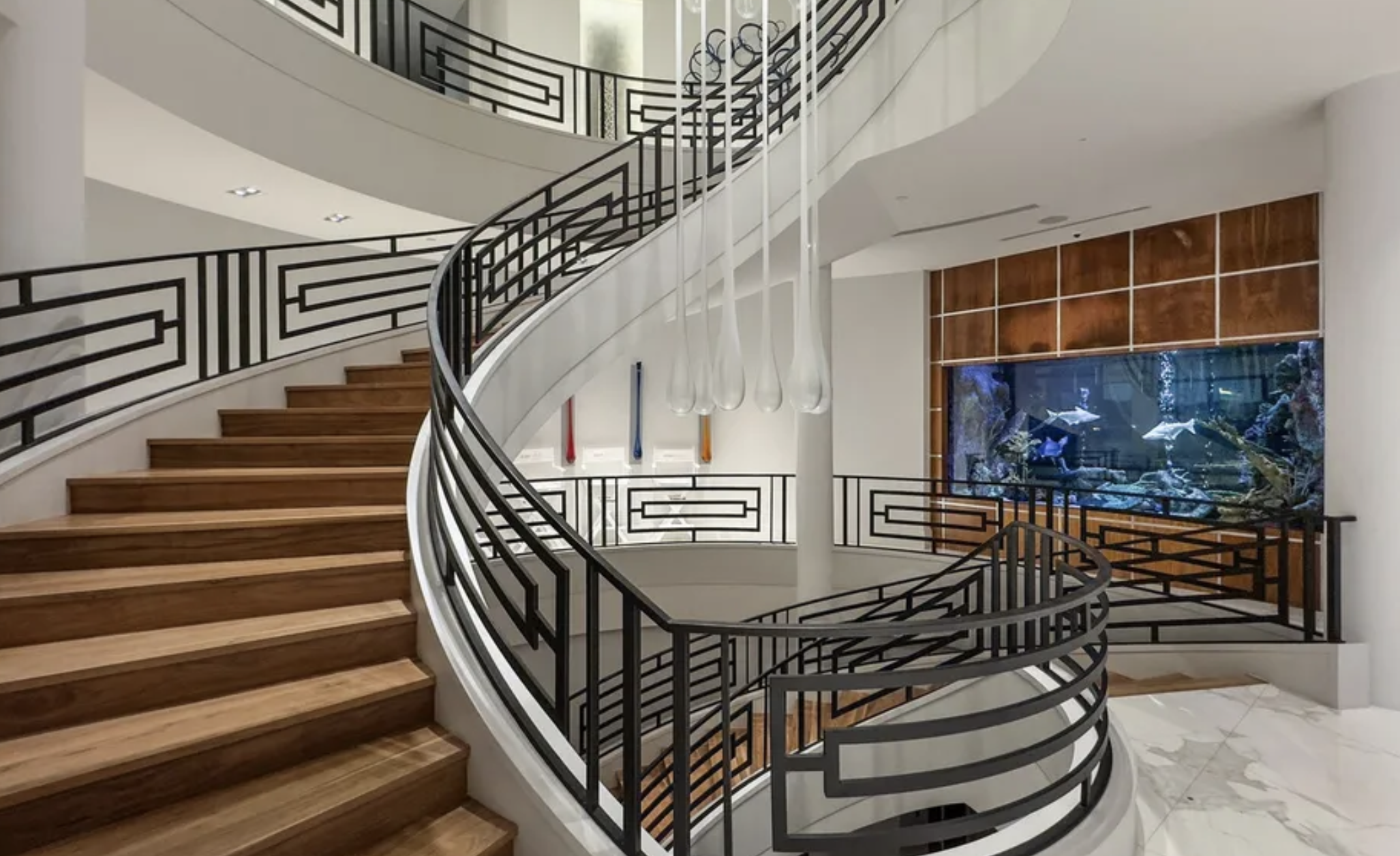 This 4-level home is located at 3102 Noble Lakes Lane in Houston, Texas and is situated on 2/3 of an acre of land. It is the former home of American professional basketball coach and former NBA player Nick Van Exel.