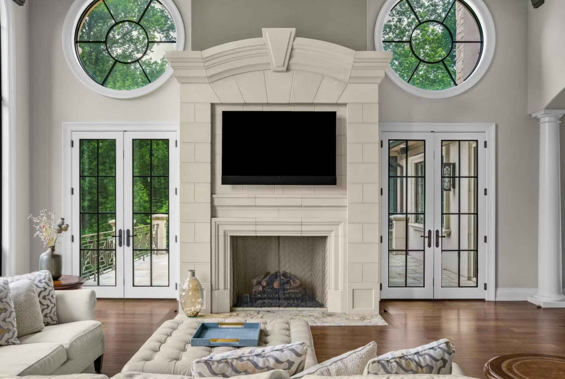 It features over 18,000 square feet of living space with 5 bedrooms, 6 full and 3 half bathrooms, great room, formal dining room, kitchen, breakfast room, office, wet bar, movie theater, gym, indoor pool with spa, vault, indoor shooting range, 4-car garage and more.