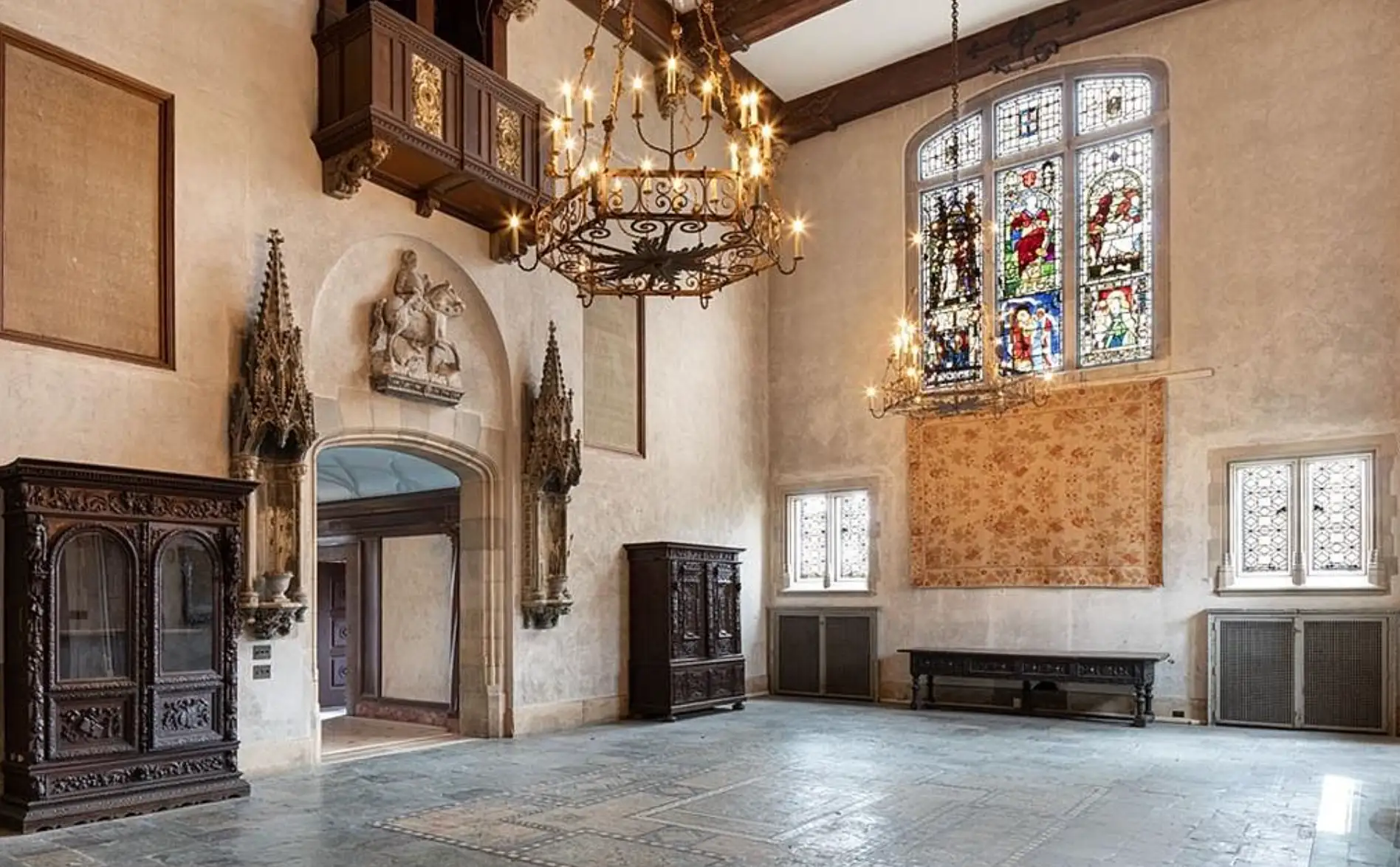 This historic mansion, dubbed “Seaview Terrace” (also known as the Carey Mansion), is located at 207 Ruggles Avenue in Newport, Rhode Island and is situated on over 7 acres of land. It is the fifth largest estate in Newport and the largest that remains privately owned. It was built in 1907 for Edson Bradley, who was the president of Kentucky whiskey distiller W.A. Gaines and Company of Frankfort, Kentucky.